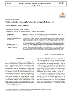 Authors: Jocelyn Barbosa and January D. Febro Data Mining, Educational Data Mining, Knowledge Discovery in Databases, Student PredictionAbstract