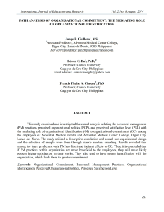 Authors: Dr. Francis Thaise Junge B. Guillena and Edwin C. Du Organizational Commitment, Organizational Identification, Perceived Organizational Politics, Perceived Satisfaction Level, Personnel Management PracticesAbstract