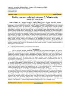 Authors: Dr. Francis Thaise Ismael N. Talili, Mary Ann E. Telen and Sheryl S. Yaňez innovations, quality assurance, school outcomesAbstract