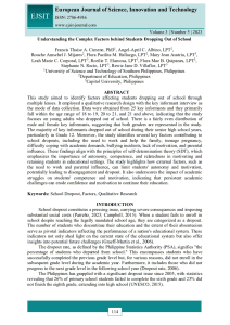 Authors: Dr. Francis Thaise Angel-April C. Albino, Rouche Amschel J. Mijares, Flora Pacilita M. Hallazgo, Mary Jean Austria, Leah Marie C. Corporal, Rorilie T. Elarcosa, Flora Mae B. Quipanes, Stephanie N. Recto and Rewie Jane D. Villaflor Factors, Qualitative Research, School DropoutAbstract